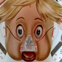Straight from the golden age of children’s television, this unassembled Dilly Dally mask was issued in the early 1950s as part of Poll-Parrot Shoe Company’s promotional Tuk-A-Tab mask series tied to the wildly popular Howdy Doody Show.