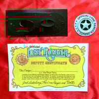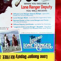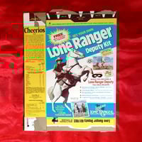 Original 1980 General Mills Official Lone Ranger Fan Club / Deputy Kit with the complete Cheerios box. The Lone Ranger Deputy Kit contains certificate, instructions, original unused mask, badge, poster and the original envelope it was sent in.